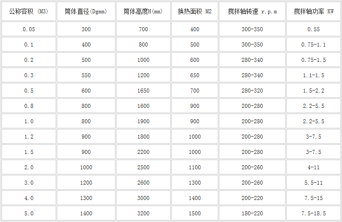 注:冷卻加熱形式有夾套式、內盤管式,外環管式,供用戶選用。