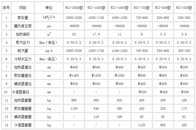 WZI型有一效、二效、三效系列規格,另有Q型為強制外循環蒸發器。本品可廣泛用于醫藥、食品、化工、輕工等行業的水或有機溶媒溶液的蒸發濃縮。特別適用于熱敏性物料,(例如中藥生產的水、醇提取液、抗生素發酵液、牛奶、果汁等),在真空條件下進行低溫連續濃縮,可確保產品質量。